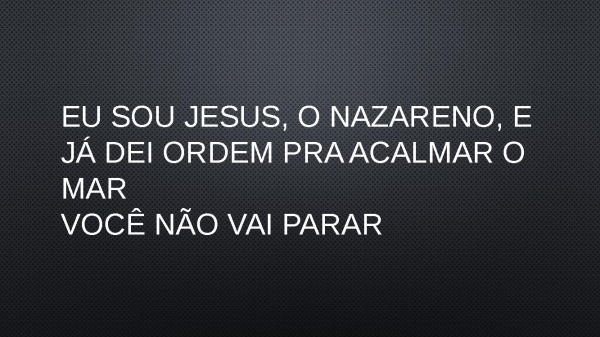 - Eu sou Jesus, o Nazareno, e já dei ordem pra acalmar o marVocê não vai parar