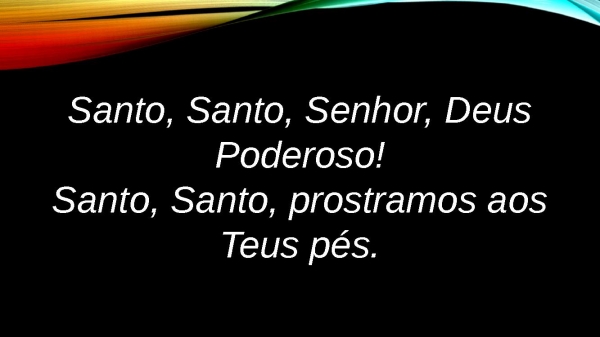 - Santo, Santo, Senhor, Deus Poderoso!Santo, Santo, prostramos aos Teus pés.