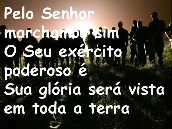 - Pelo Senhor marchamos simO Seu exército poderoso éSua glória será vista em toda a terra