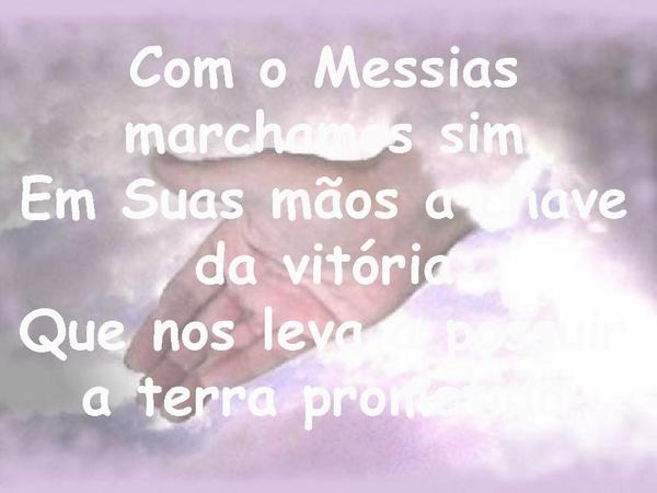 - Com o Messias marchamos simEm Suas mãos a chave da vitóriaQue nos leva a possuir a terra prometida