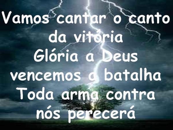 - Vamos cantar o canto da vitóriaGlória a Deus vencemos a batalhaToda arma contra nós perecerá