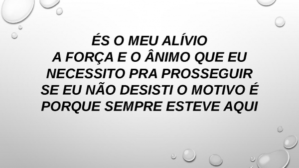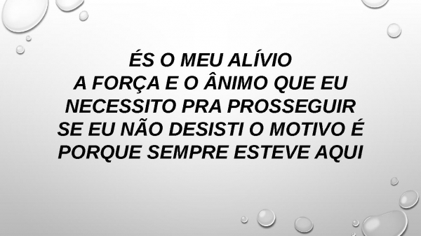 - És o meu alívioA força e o ânimo que eu necessito pra prosseguirSe eu não desisti o motivo é porque sempre esteve aqui