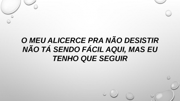 - O meu alicerce pra não desistirNão tá sendo fácil aqui, mas eu tenho que seguir
