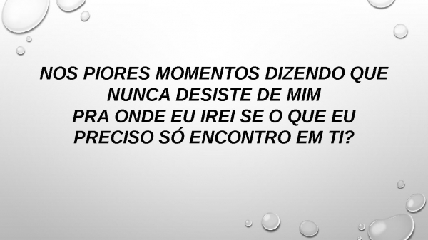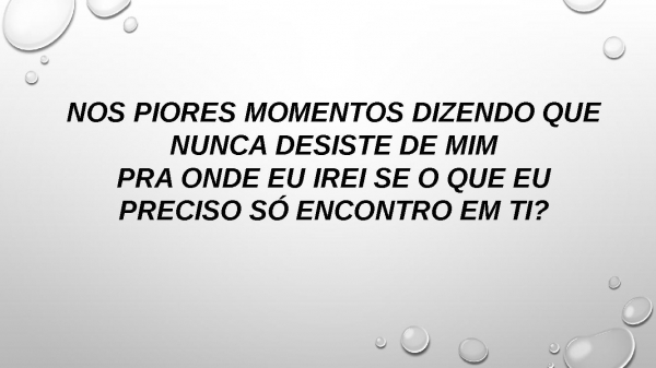 - Nos piores momentos dizendo que nunca desiste de mimPra onde eu irei se o que eu preciso só encontro em Ti?
