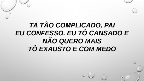 - Tá tão complicado, PaiEu confesso, eu tô cansado e não quero maisTô exausto e com medo