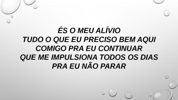 - És o meu alívioTudo o que eu preciso bem aqui comigo pra eu continuarQue me impulsiona todos os dias pra eu não parar