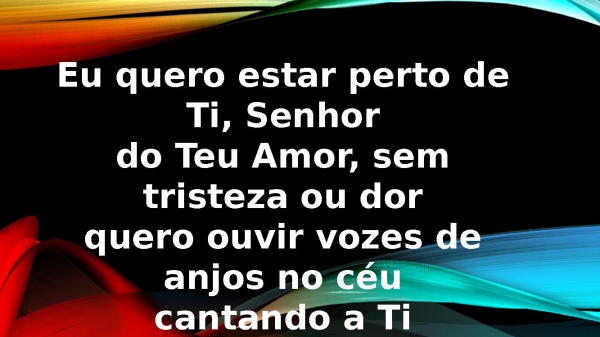 - Eu quero estar perto de Ti, Senhordo Teu Amor, sem tristeza ou dorquero ouvir vozes de anjos no céucantando a Ti