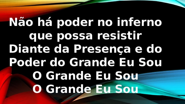 - Não há poder no inferno que possa resistirDiante da Presença e do Poder do Grande Eu SouO Grande Eu SouO Grande Eu Sou