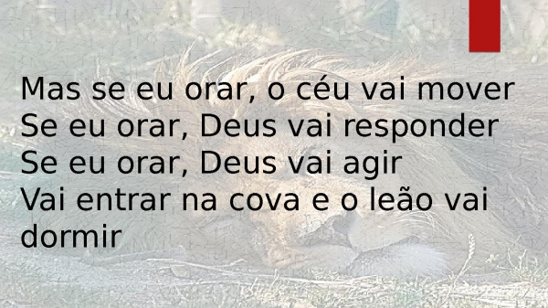 - Mas se eu orar, o céu vai moverSe eu orar, Deus vai responderSe eu orar, Deus vai agirVai entrar na cova e o leão vai dormir