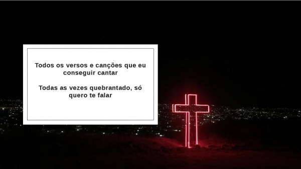 - Todos os versos e canções que eu conseguir cantarTodas as vezes quebrantado, só quero te falar