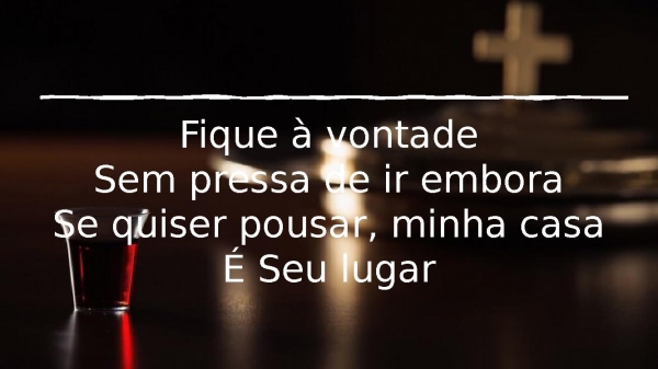 - Fique à vontadeSem pressa de ir emboraSe quiser pousarMinha casa é Seu lugarMinha casa é Seu lugar