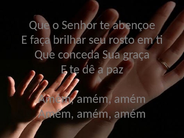 - Que o Senhor te abençoeE faça brilhar seu rosto em tiQue conceda Sua graçaE te dê a pazAmém, amém, amémAmém, amém, amém