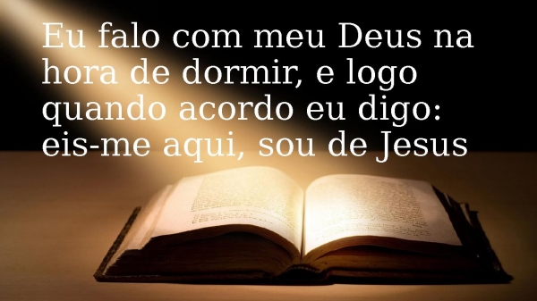 - Eu falo com meu Deus na hora de dormir, e logo quando acordo eu digo: eis-me aqui, sou de Jesus