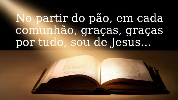 - No partir do pão, em cada comunhão, graças, graças por tudo, sou de Jesus...