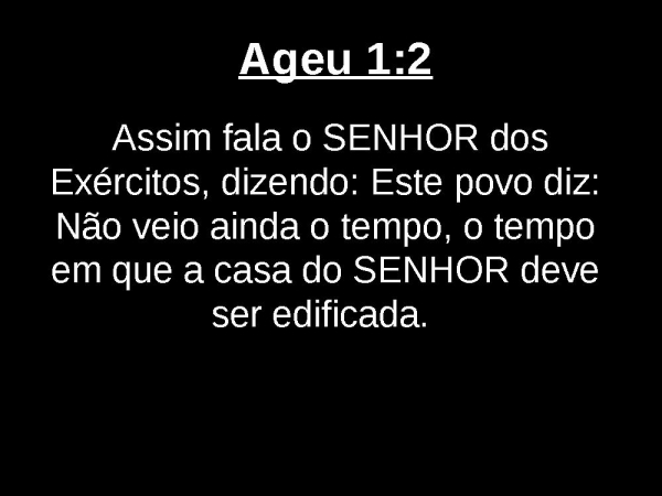 - Ageu 1:2 Assim fala o SENHOR dos Exércitos, dizendo: Este povo diz: Não veio ainda o tempo, o tempo em que a casa do SENHOR deve ser edificada.