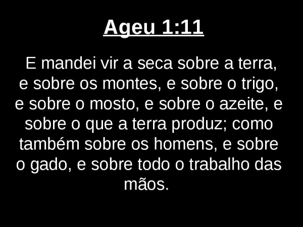- Ageu 1:11 E mandei vir a seca sobre a terra, e sobre os montes, e sobre o trigo, e sobre o mosto, e sobre o azeite, e sobre o que a terra produz; como também sobre os homens, e sobre o gado, e sobre todo o trabalho das mãos.