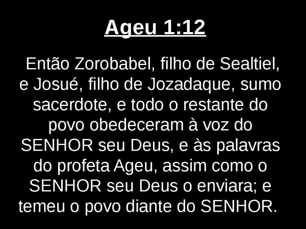 - Ageu 1:12 Então Zorobabel, filho de Sealtiel, e Josué, filho de Jozadaque, sumo sacerdote, e todo o restante do povo obedeceram à voz do SENHOR seu Deus, e às palavras do profeta Ageu, assim como o SENHOR seu Deus o enviara; e temeu o povo diante do SENHOR.