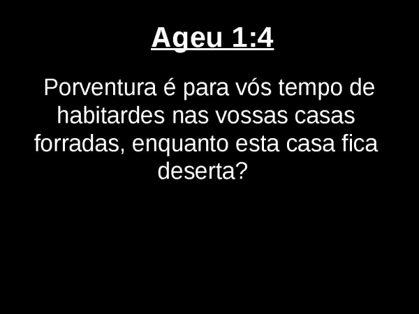 - Ageu 1:4 Porventura é para vós tempo de habitardes nas vossas casas forradas, enquanto esta casa fica deserta?