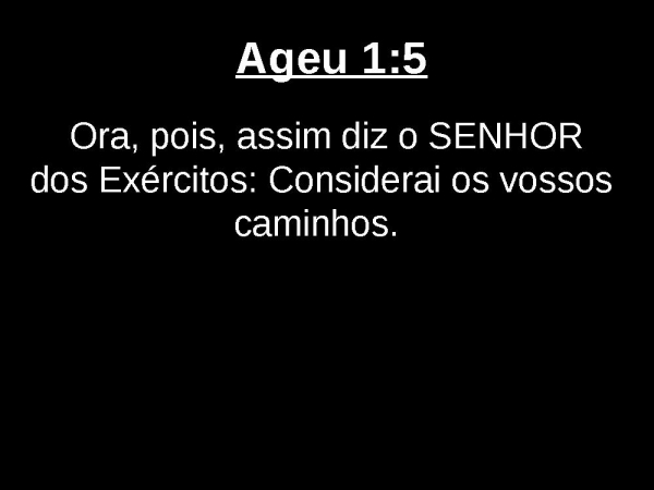 - Ageu 1:5 Ora, pois, assim diz o SENHOR dos Exércitos: Considerai os vossos caminhos.