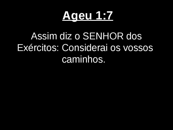 - Ageu 1:7 Assim diz o SENHOR dos Exércitos: Considerai os vossos caminhos.
