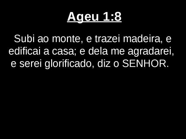 - Ageu 1:8 Subi ao monte, e trazei madeira, e edificai a casa; e dela me agradarei, e serei glorificado, diz o SENHOR.
