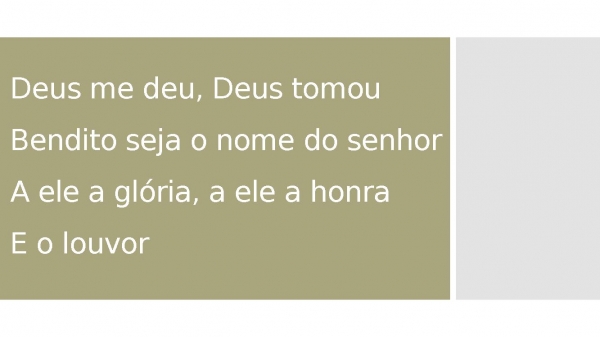 - Deus me deu, Deus tomouBendito seja o nome do senhorA ele a glória, a ele a honraE o louvor