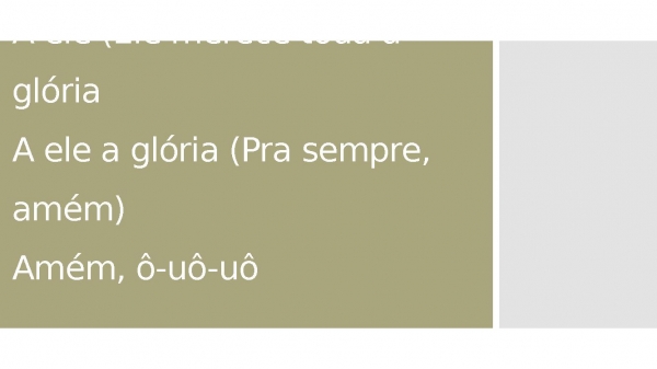 - A ele (Oh, a ele a glória)A ele (Ele merece toda a glóriaA ele a glória (Pra sempre, amém)Amém, ô-uô-uô