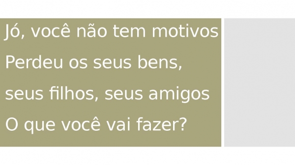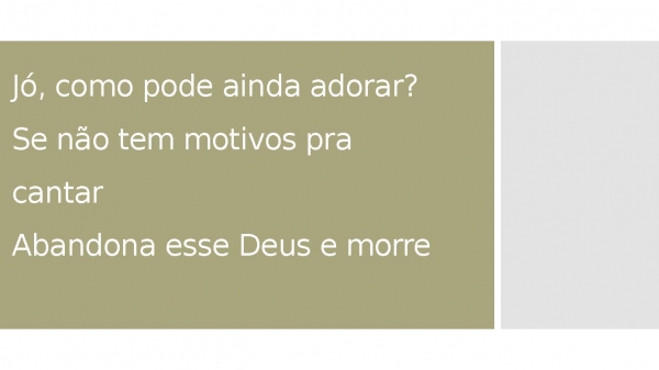 - Jó, como pode ainda adorar?Se não tem motivos pra cantarAbandona esse Deus e morre