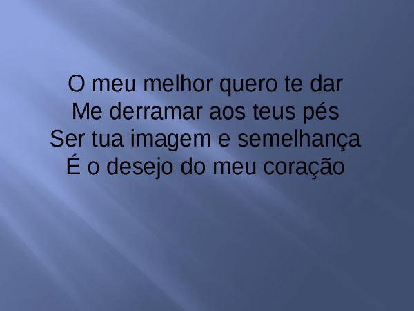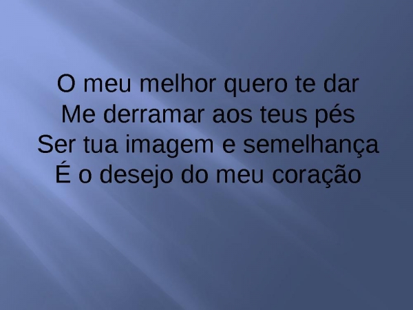 - O meu melhor quero te darMe derramar aos teus pésSer tua imagem e semelhançaÉ o desejo do meu coração
