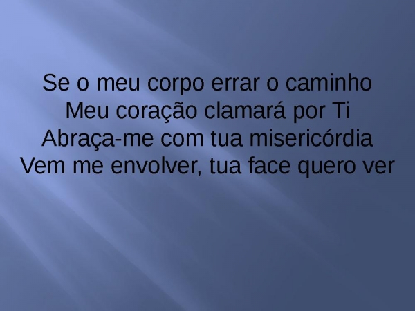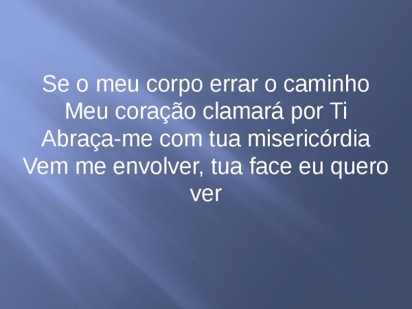 - Se o meu corpo errar o caminhoMeu coração clamará por TiAbraça-me com tua misericórdiaVem me envolver, tua face quero ver