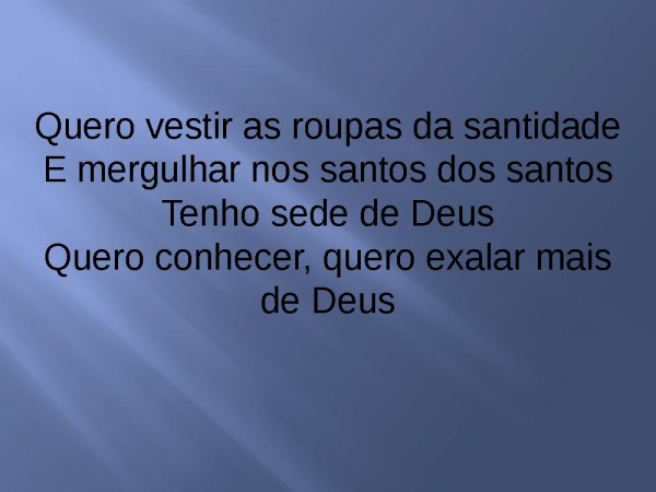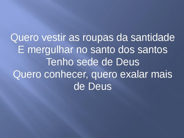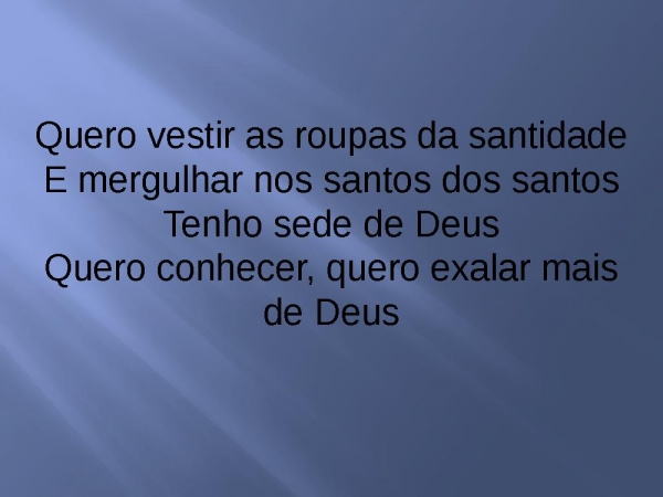 - Quero vestir as roupas da santidadeE mergulhar no santo dos santosTenho sede de DeusQuero conhecer, quero exalar mais de Deus