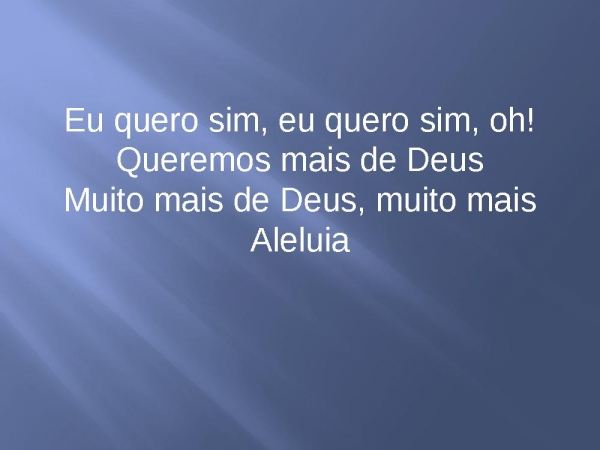 - Eu quero sim, eu quero sim, oh!Queremos mais de DeusMuito mais de Deus, muito maisAleluia