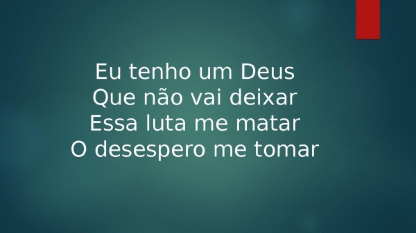 - Eu tenho um DeusQue não vai deixarEssa luta me matarO desespero me tomar