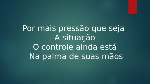 - Por mais pressão que seja A situaçãoO controle ainda está Na palma de suas mãos