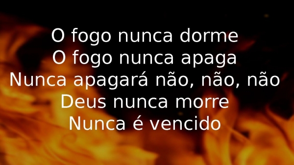 - O Fogo nunca dormeO fogo nunca apagaNunca apagará não, não, nãoDeus nunca morreNunca é vencido