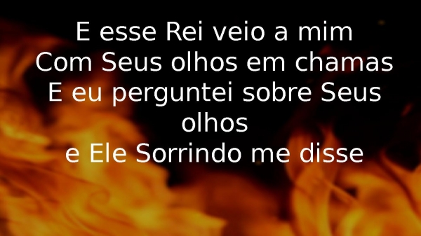 - E esse Rei veio a mimCom Seus olhos em chamasE eu perguntei sobre Seus olhose Ele Sorrindo me disse