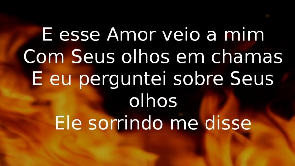 - E esse Amor veio a mimCom Seus olhos em chamasE eu perguntei sobre Seus olhosEle sorrindo me disse