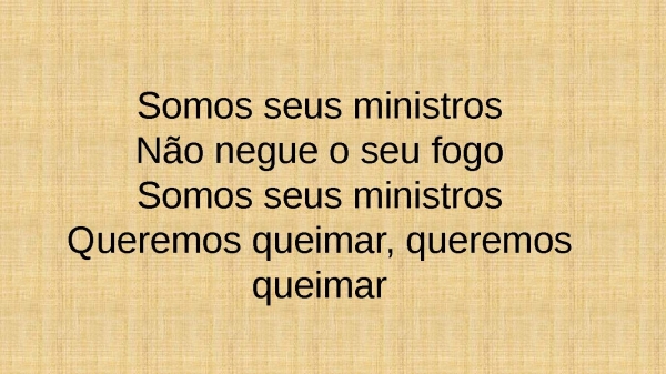 - Somos seus ministrosNão negue o seu fogoSomos seus ministrosQueremos queimar, queremos queimar