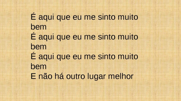 - É aqui que eu me sinto muito bemÉ aqui que eu me sinto muito bemÉ aqui que eu me sinto muito bemE não há outro lugar melhor