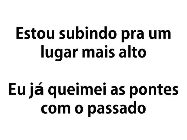 - Estou subindo pra um lugar mais altoEu já queimei as pontes com o passado