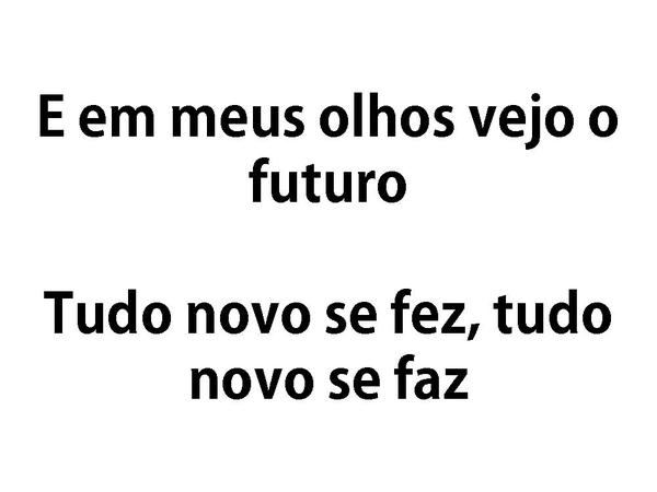 - E em meus olhos vejo o futuroTudo novo se fez, tudo novo se faz