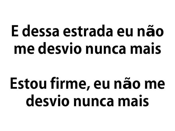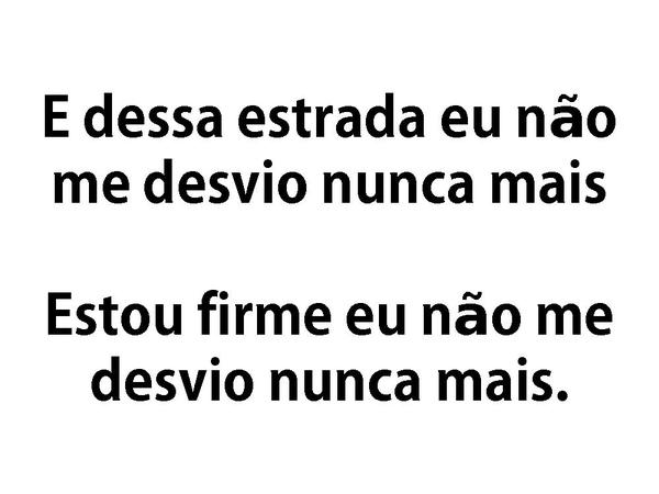 - E dessa estrada eu não me desvio nunca maisEstou firme eu não me desvio nunca mais.