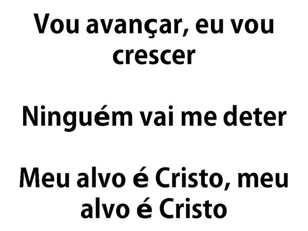 - Vou avançar, eu vou crescerNinguém vai me deterMeu alvo é Cristo, meu alvo é Cristo