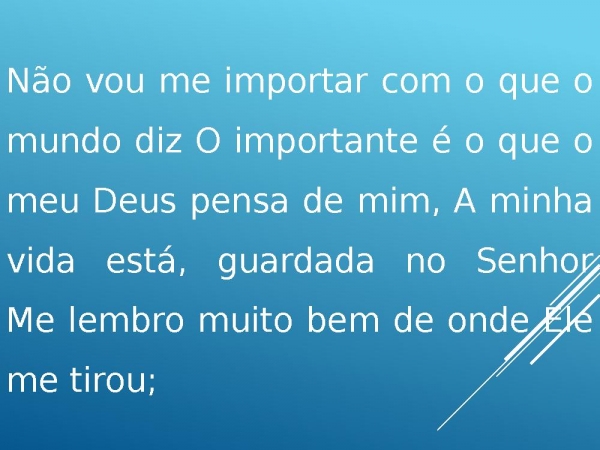 - Não vou me importar com o que o mundo diz O importante é o que o meu Deus pensa de mim, A minha vida está, guardada no SenhorMe lembro muito bem de onde Ele me tirou;