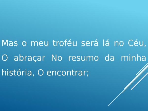- Mas o meu troféu será lá no Céu, O abraçar No resumo da minha história, O encontrar;