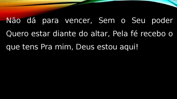 - Não dá para vencer, Sem o Seu poderQuero estar diante do altar, Pela fé recebo o que tens Pra mim, Deus estou aqui!