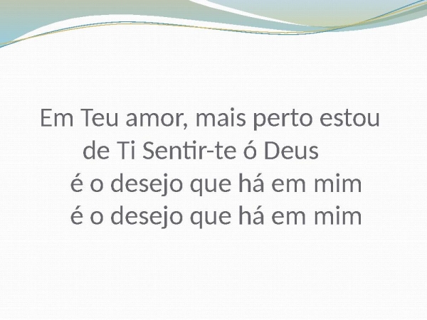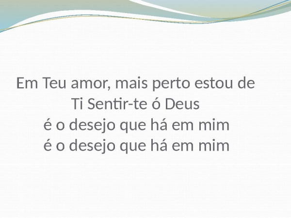 - Em Teu amor, mais perto estou de Ti Sentir-te ó Deus é o desejo que há em mim é o desejo que há em mim