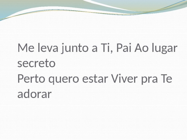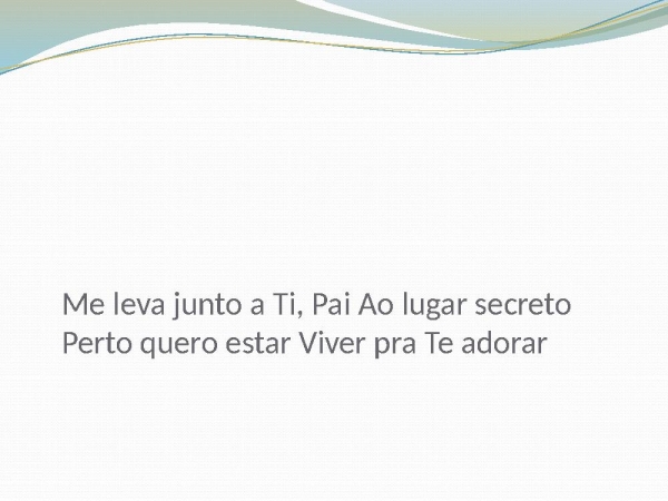 - Me leva junto a Ti, Pai Ao lugar secreto Perto quero estar Viver pra Te adorar