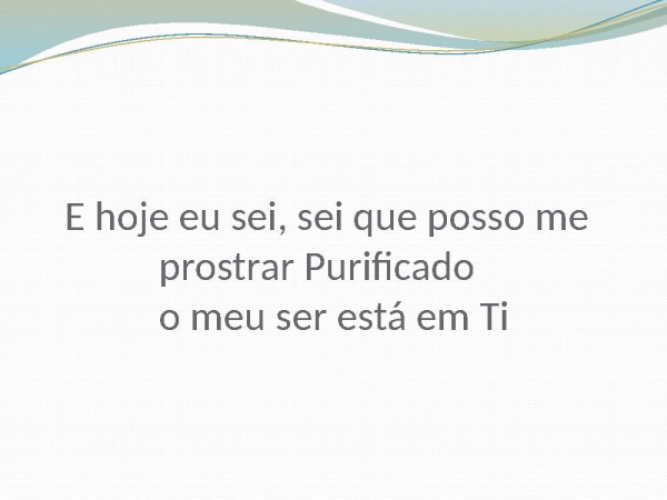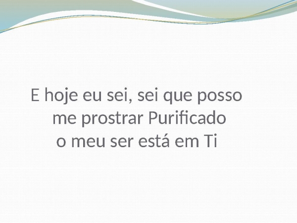 - E hoje eu sei, sei que posso me prostrar Purificado o meu ser está em Ti