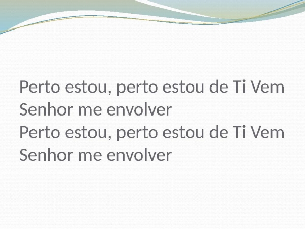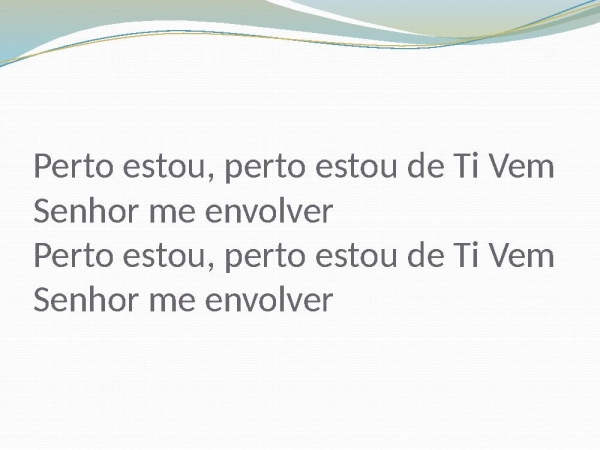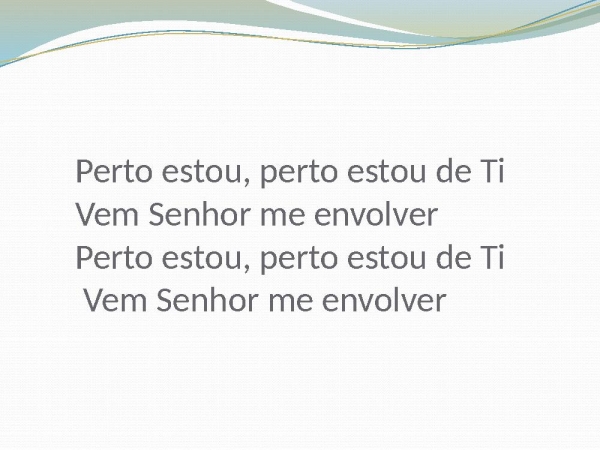 - Perto estou, perto estou de Ti Vem Senhor me envolver Perto estou, perto estou de Ti Vem Senhor me envolver